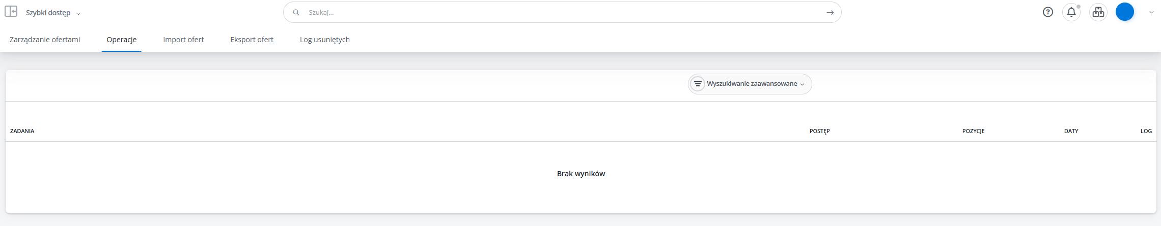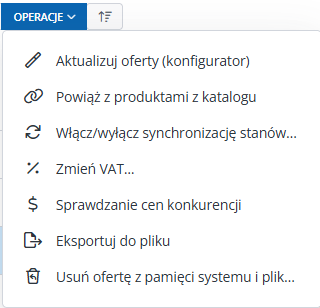 Niebieski przycisk "Operacje" pozwala hurtowo wykonać pewne operacje na więcej niż jednej ofercie jednocześnie.