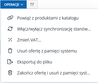 Niebieski przycisk "Operacje" pozwala hurtowo wykonać pewne operacje na więcej niż jednej ofercie jednocześnie.