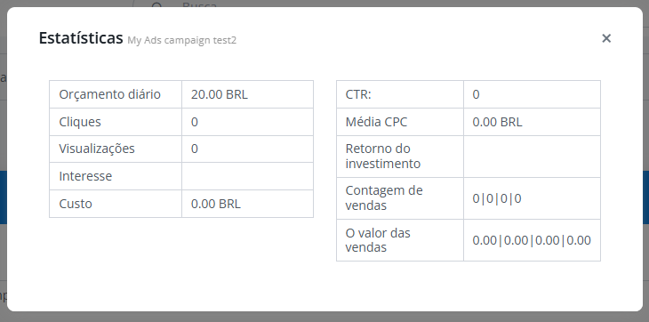 Cada campanha possui a opção de visualizar suas estatísticas.