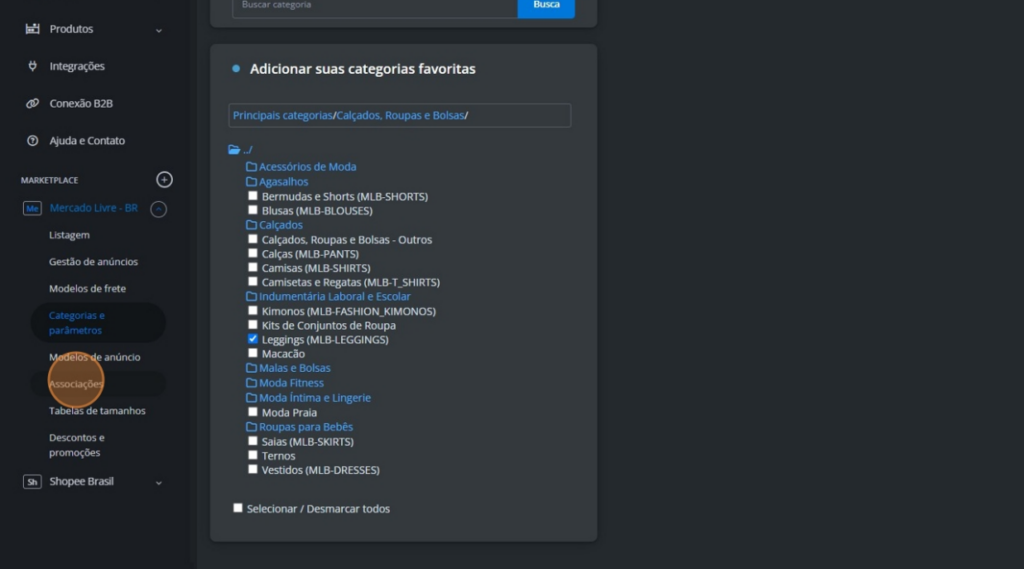 Passo 3: Ligando Suas “categorias internas” com as “Categorias” dos Marketplaces (Mapeamento)