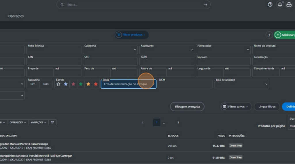 3. E os Produtos com “Erro de Sincronização” e Estoque/Preço Zerados?