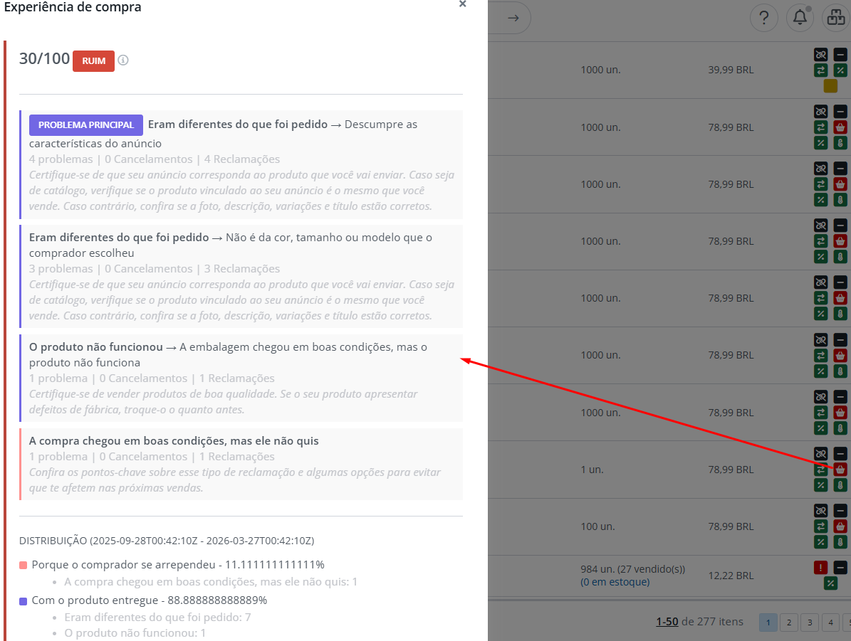 Com ele, o seller consegue identificar rapidamente se o anúncio está oferecendo uma boa experiência ou se existem pontos de melhoria.