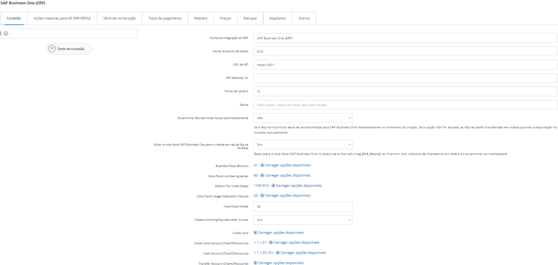 O SAP é um ERP altamente parametrizável e, por isso, a configuração da integração exige atenção a diversos detalhes técnicos e fiscais. Muitos desses parâmetros só ficam disponíveis com perfil de suporte no SAP.