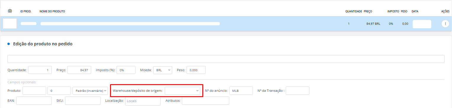 Por fim, na tela de pedidos, a Base exibe o depósito de origem do estoque utilizado.