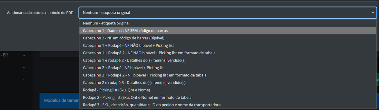 Cada opção de etiqueta permite imprimir informações adicionais, garantindo maior organização e eficiência no processo de expedição.