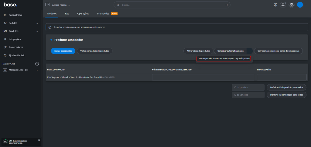 Tem novidade na Base! Agora o processo de associação entre integrações está mais prático e flexível, pois não é mais necessário manter a tela aberta até o fim.
