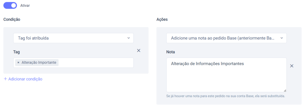 1. Criar automaticamente uma nota no pedido da Base a partir de uma ação no Responso