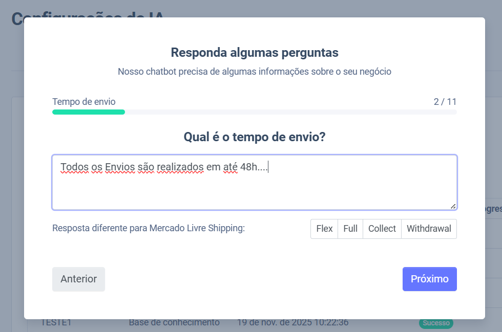 Com base na política de devoluções cadastrada, a IA responde automaticamente clientes do Mercado Livre solicitando troca, explicando prazos, passos e condições. Assim, sua equipe pode se concentrar apenas em casos complexos.