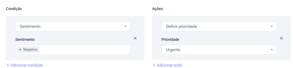 - Sentimento negativo → ticket recebe prioridade “Urgente”.