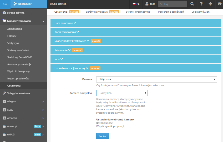 Base.com的包装助手支持订单采集和包装的流程。各项操作可以手动完成,但模块主要支持条形码扫描器的使用。